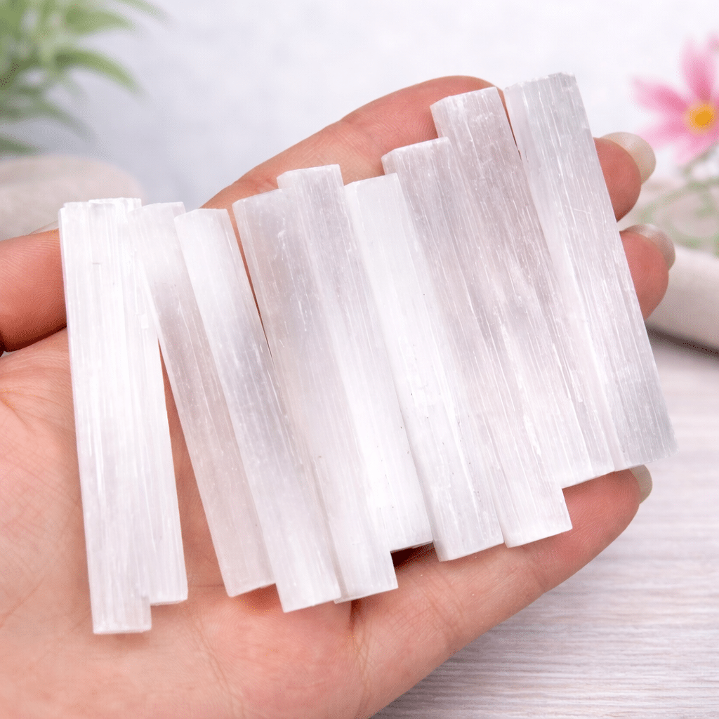 Ces baguettes de sélénite sont idéales pour la purification énergétique, l’harmonisation des espaces et le travail spirituel. Pierre reconnue pour sa vibration élevée, la sélénite est très appréciée pour ses propriétés apaisantes et clarifiantes.