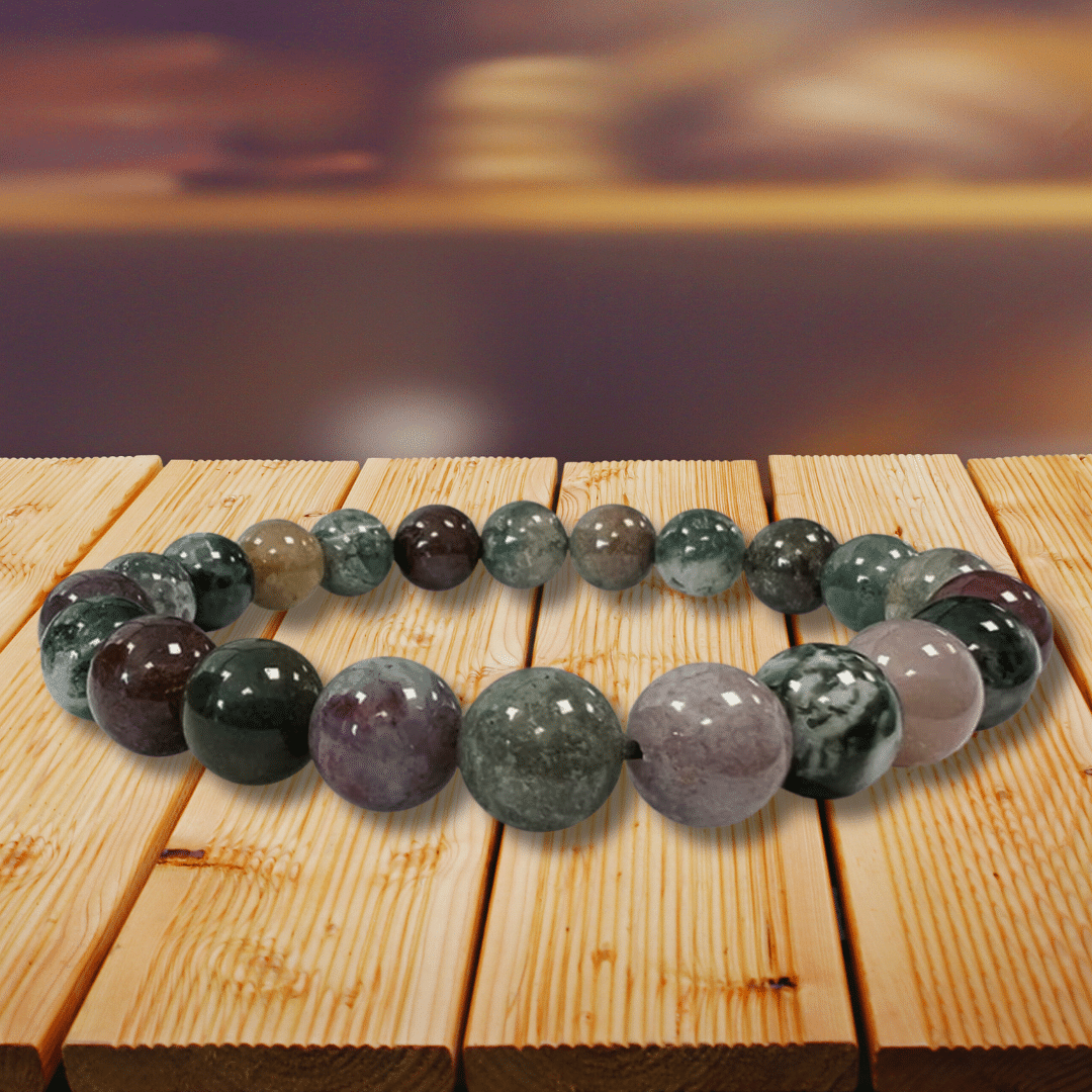 Ce bracelet en agate indienne a été pensé pour vous apporter ancrage, apaisement et équilibre émotionnel. Ses nuances naturelles (verts mousse, bruns, rosés) invitent au retour à soi, calment le mental et renforcent la stabilité intérieure.
