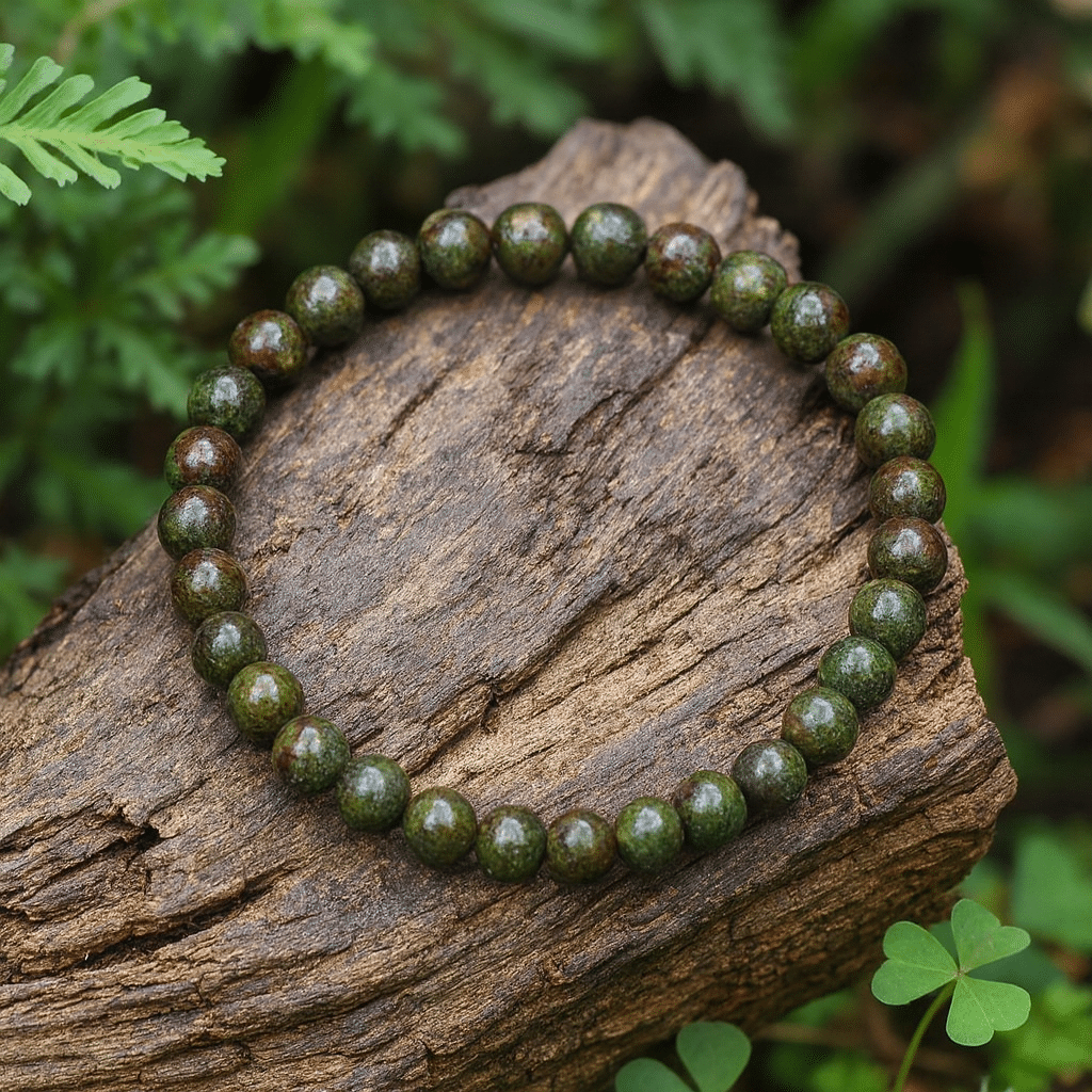 Puissant et vibrant, ce bracelet en Sang de Dragon associe la sagesse du vert au feu du rouge. Symbole de vitalité et de force, il aide à affronter les défis avec courage tout en maintenant la paix du cœur. Pierre de transformation, elle soutient la persévérance et la confiance en soi.