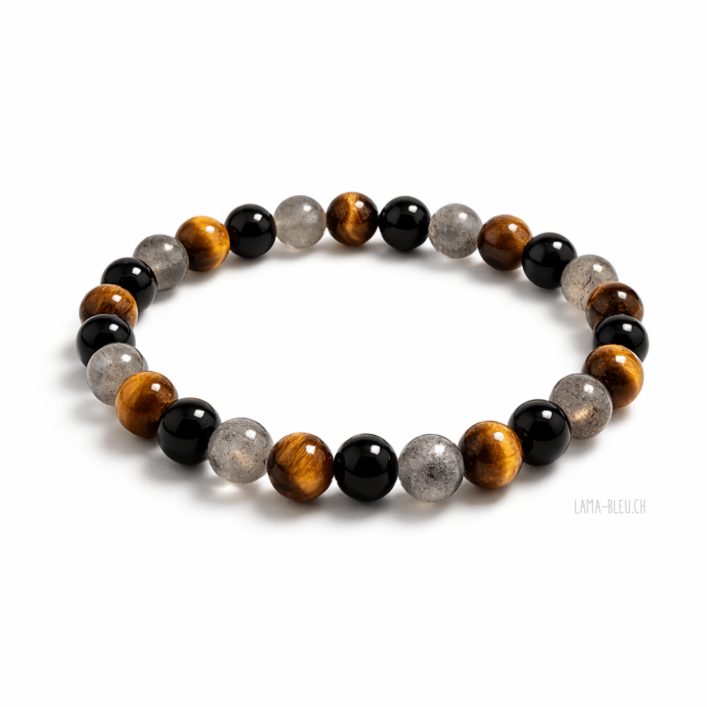 Bracelet Labradorite • Œil de Tigre • Tourmaline – perles 8 mm