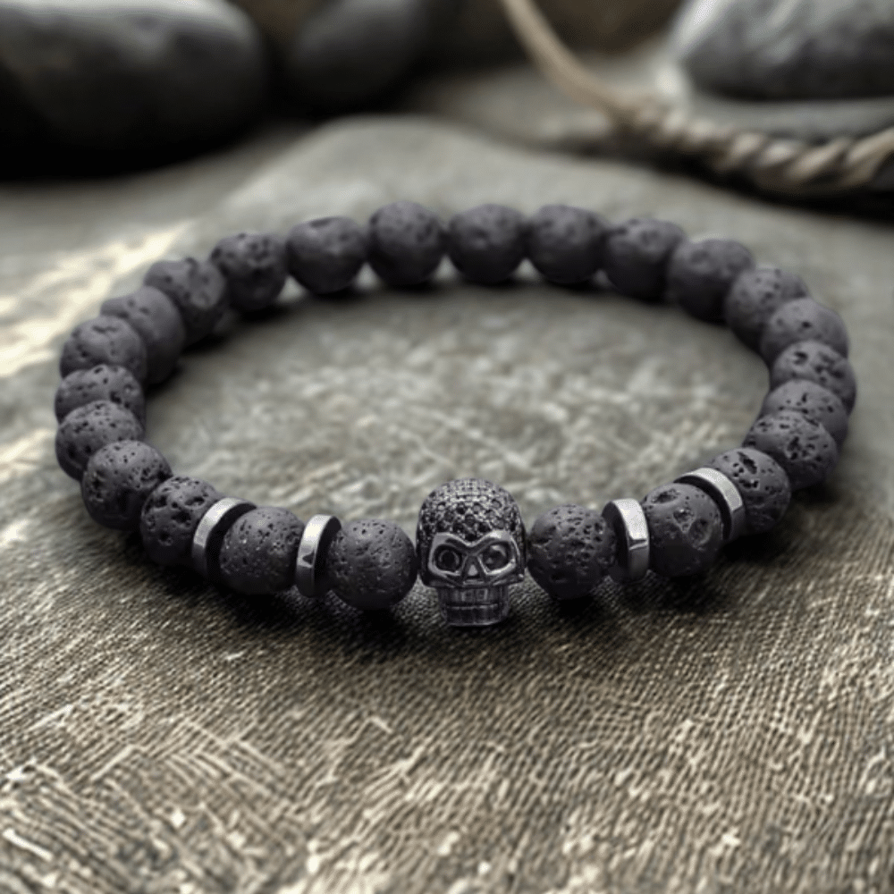 Bracelet Protection – Pierre de Lave & Tête de Mort