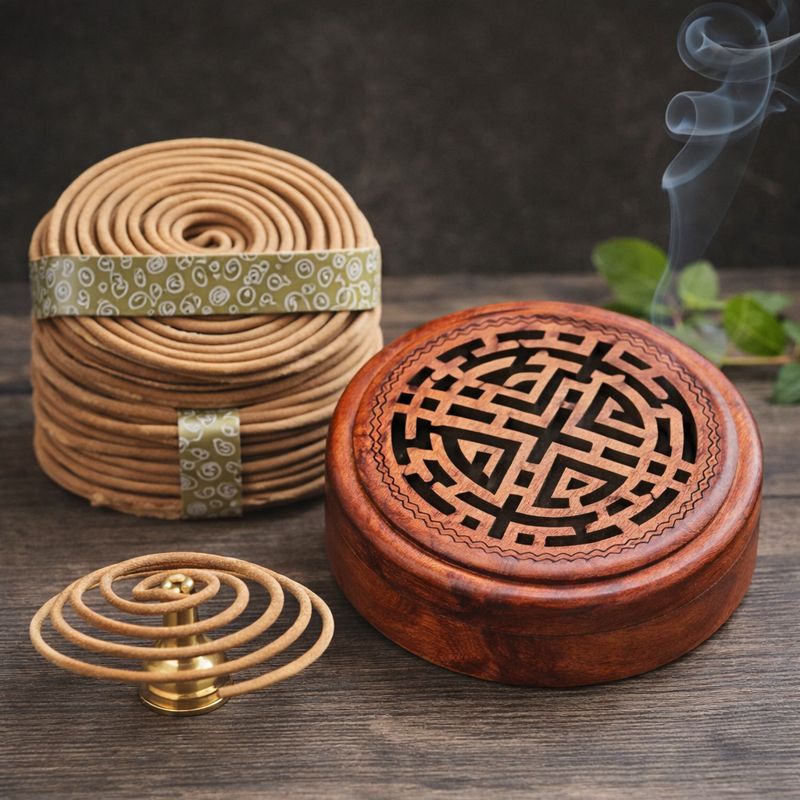 Crée une atmosphère douce, apaisante et enveloppante avec ce brûleur d’encens spirales en bois, à la fois pratique et décoratif.