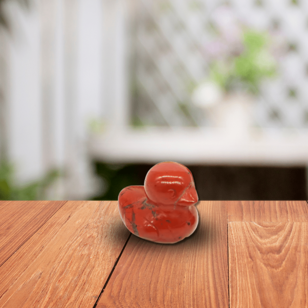Ce petit canard sculpté en Jaspe Rouge apporte une énergie vive, joyeuse et motivante.
