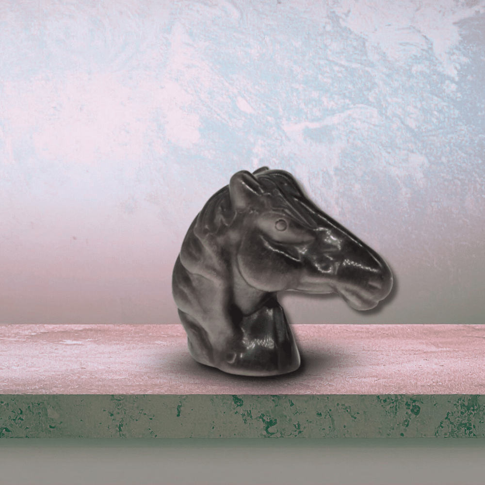 Tête de cheval sculptée en obsidienne argentée, pierre puissante de protection et de clarté mentale. Symbole de liberté, de mouvement et de force intérieure, le cheval accompagne celles et ceux qui avancent, traversent des changements ou souhaitent reprendre les rênes de leur vie. Une pièce à la fois élégante et profondément énergétique.
