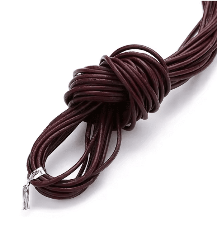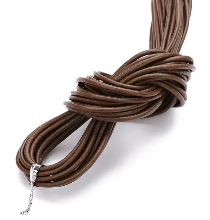 Cordon en véritable cuir, souple et résistant, d’une épaisseur d’environ 1 mm.