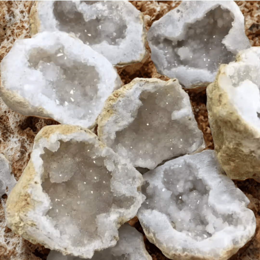 Chaque géode est vendue à la pièce (modèle unique, formes et nuances naturelles variables).
