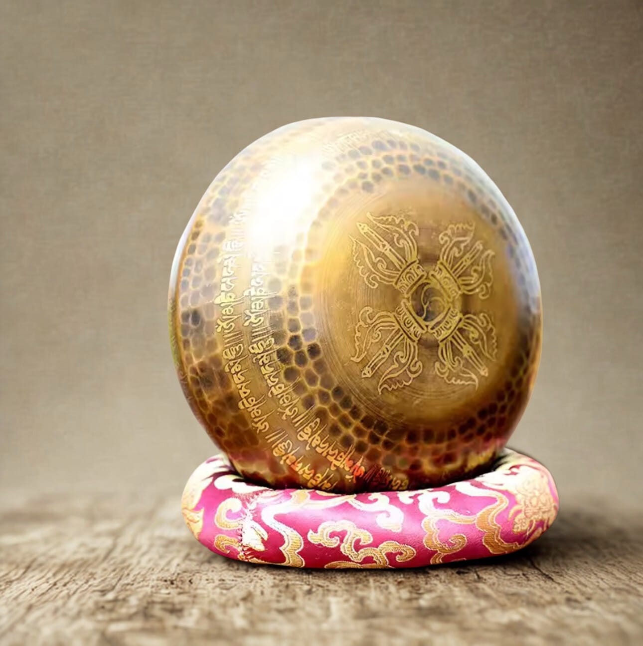 Offrez-vous un moment de paix intérieure grâce à ce magnifique bol chantant tibétain fait à la main dans la pure tradition himalayenne. Fabriqué au Népal en laiton martelé, ce bol de 17 cm possède un son profond et puissant, idéal pour les méditations, soins énergétiques, nettoyages vibratoires ou simplement pour se recentrer.