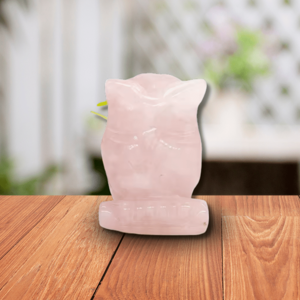 Hibou en Quartz Rose – Tendresse & Sagesse du Cœur