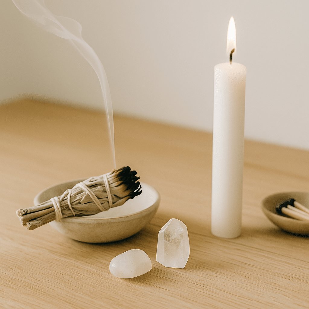 Ce kit complet comprend une sauge purifiante, une bougie blanche symbolique, et un cristal de quartz clair puissant. Ce trio vous aide à dissoudre les obstacles et à ouvrir la voie à la clarté et aux nouvelles opportunités.