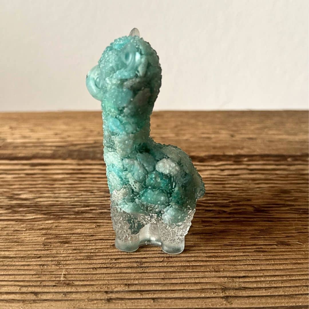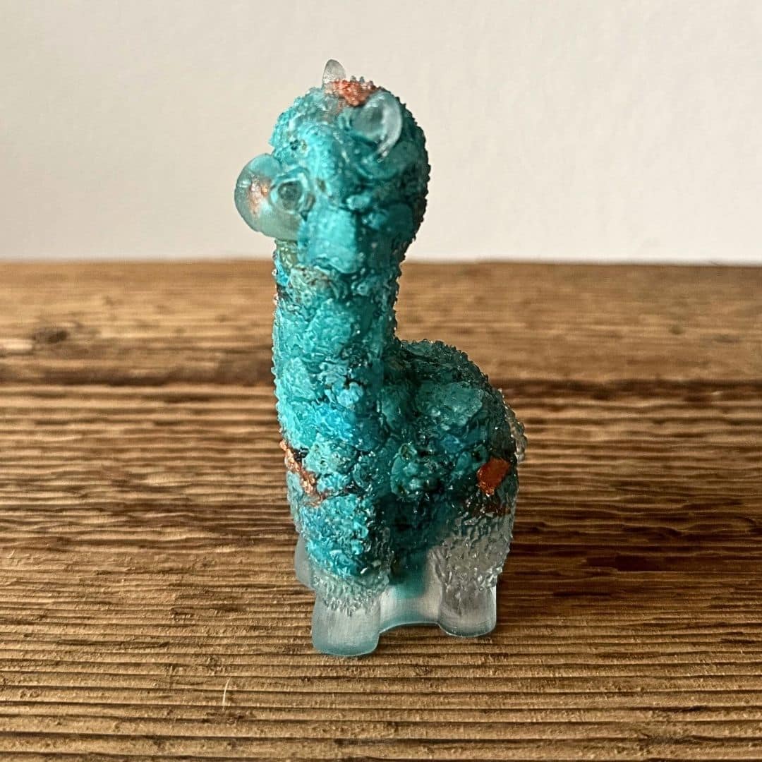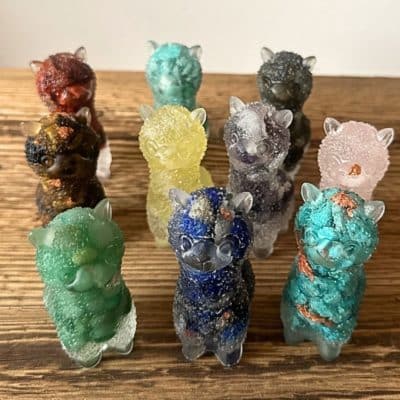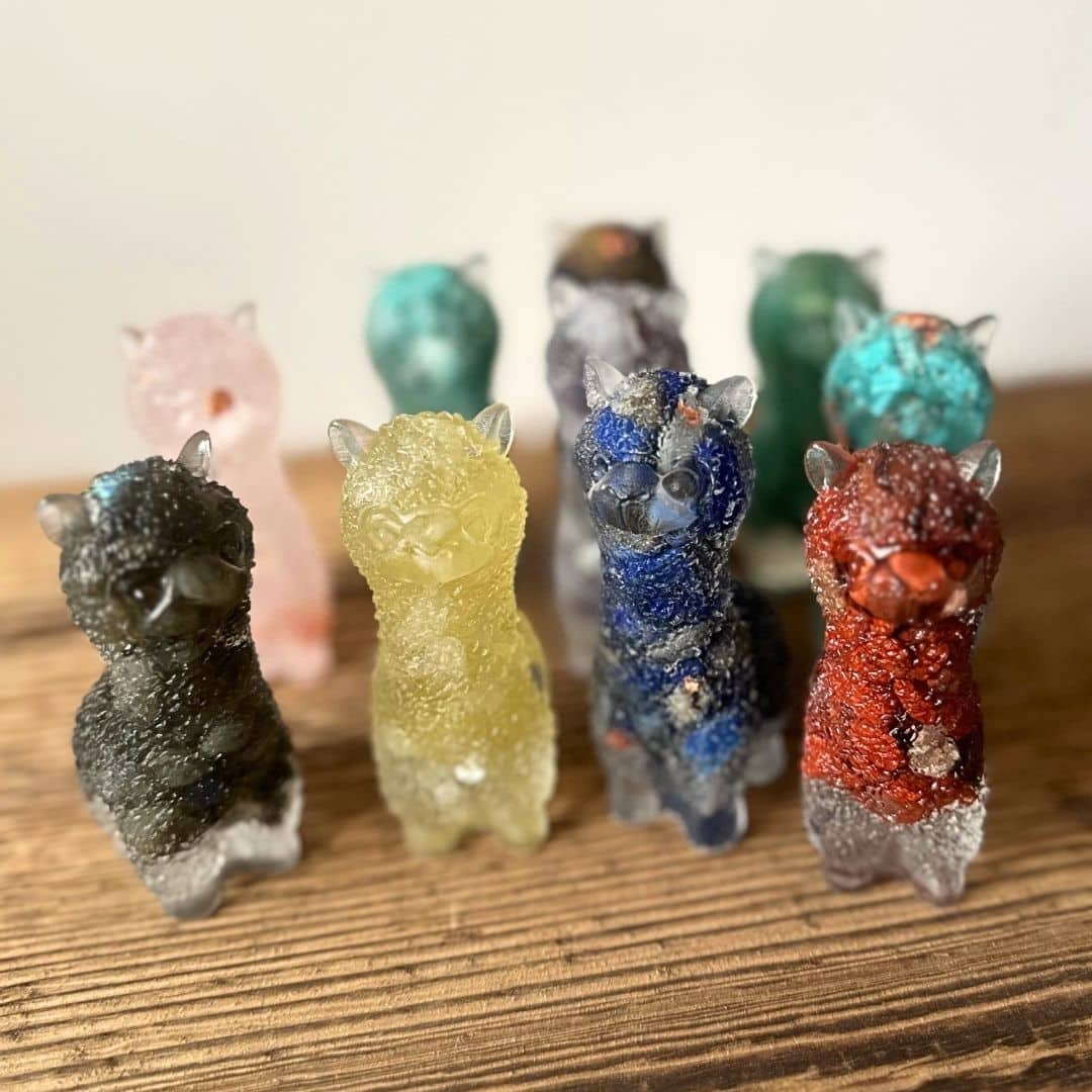 Ces adorables petits lamas ne sont pas seulement mignons, ils sont aussi porteurs d’énergies bienfaisantes ! Chacun est entièrement façonné en résine transparente et contient de véritables éclats de pierres naturelles ainsi que des feuilles de cuivre, d’or ou d’aluminium selon les modèles. Ils sont inspirés des orgonites, combinant des pierres naturelles et des feuilles de métal (cuivre, alu, or) pour favoriser une belle circulation énergétique.