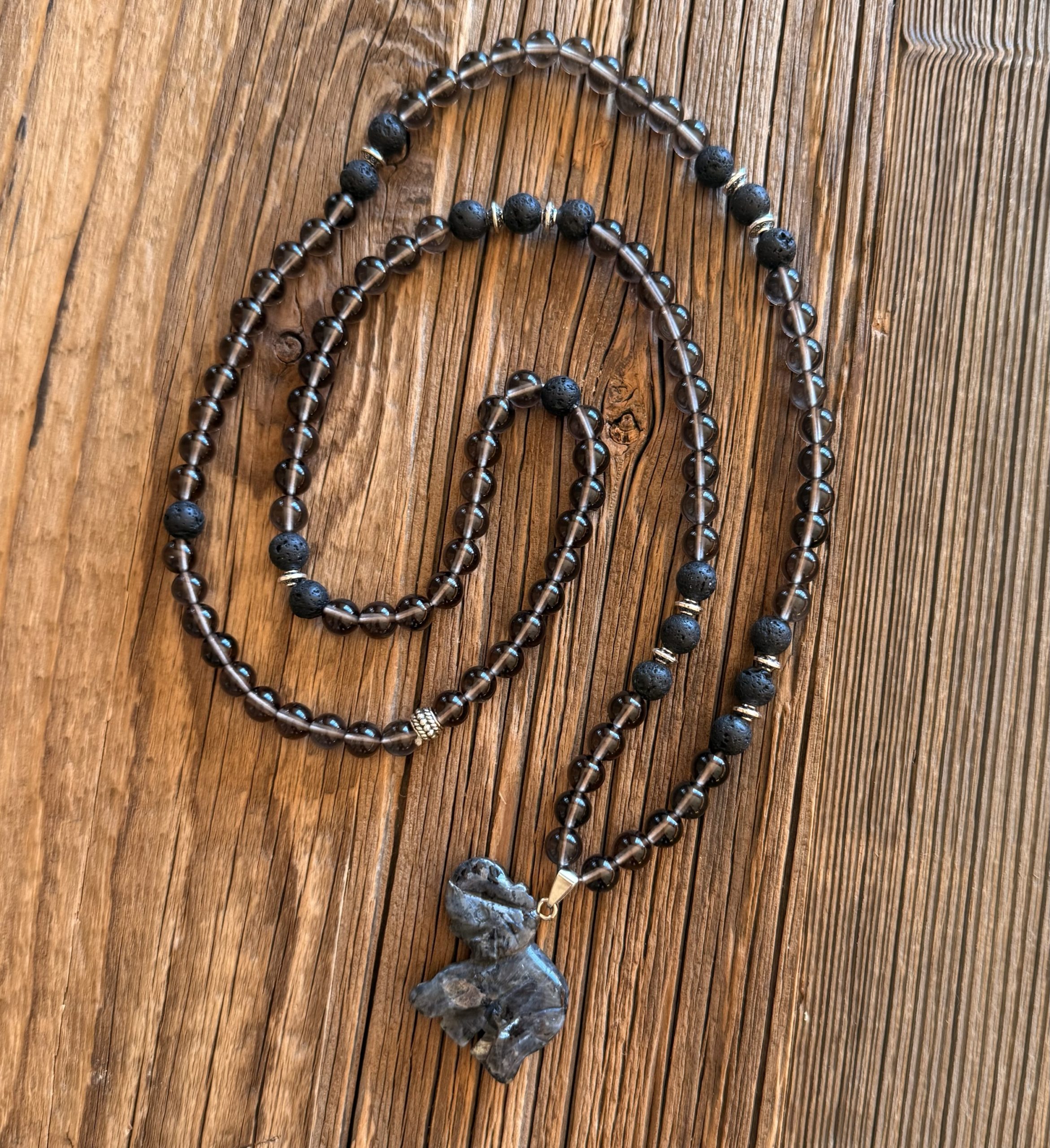 Le pendentif Éléphant en Labradorite symbolise la sagesse, la protection et la guidance. La labradorite est connue comme pierre “bouclier”, elle protège des énergies lourdes et amplifie l’intuition.