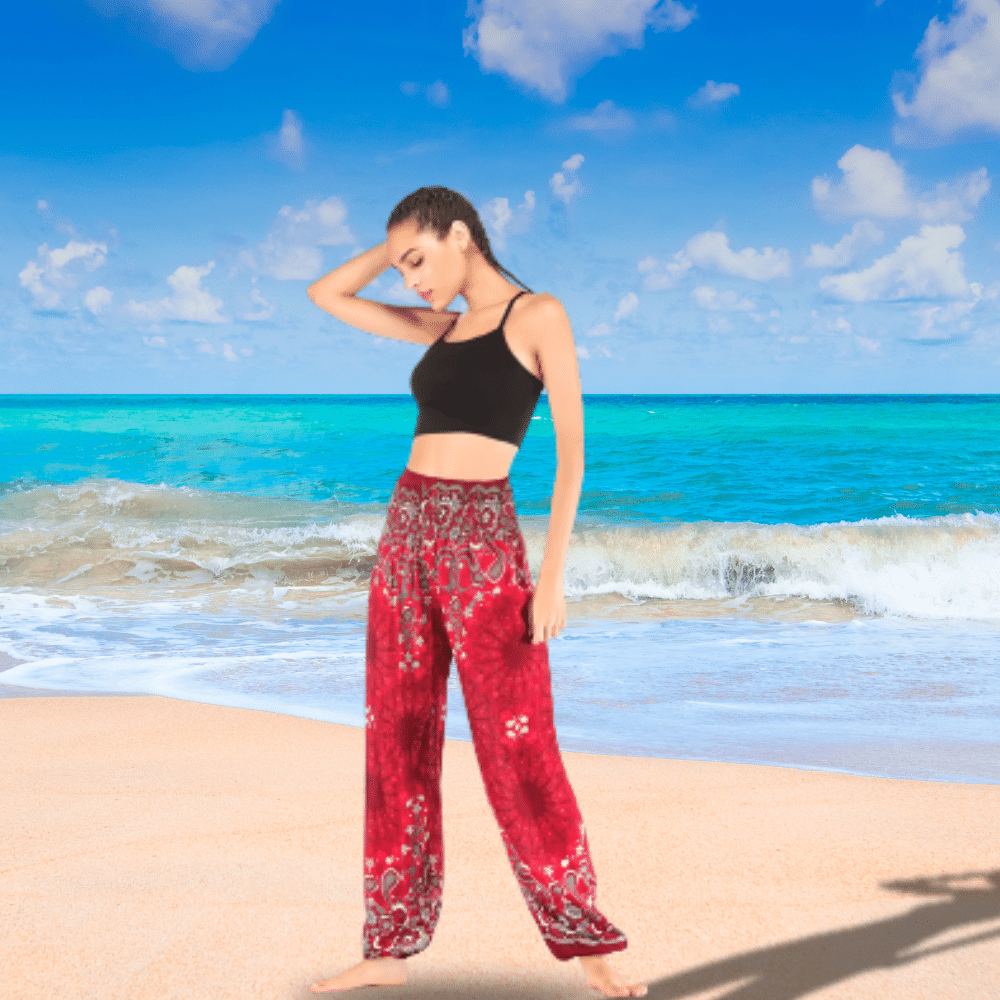 Pantalon de Yoga Boho – Rouge motifs floraux
