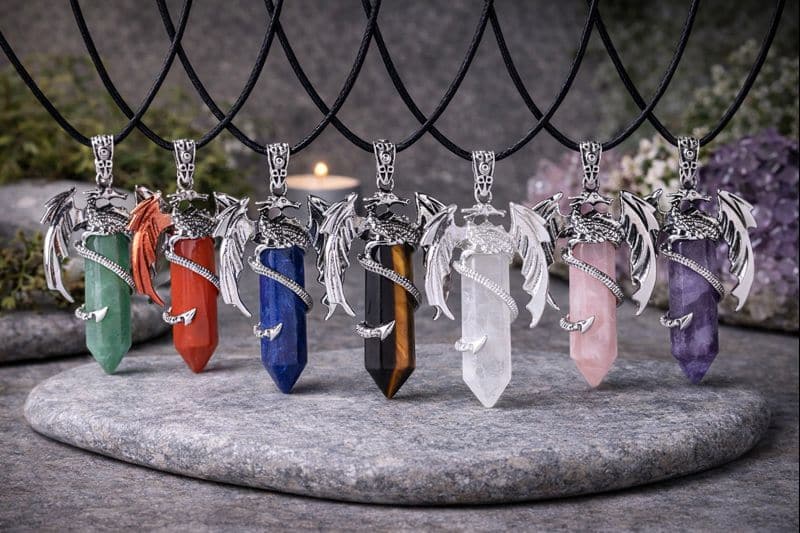 Un talisman puissant alliant la symbolique du dragon – force, protection et transformation – à l’énergie des pierres naturelles. Chaque pendentif est unique et choisi pour t’accompagner au quotidien selon tes besoins et ton intuition.