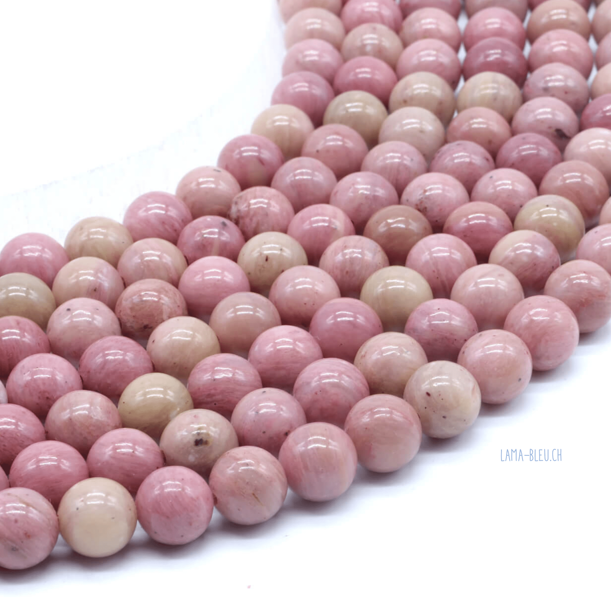 Ces perles en Rhodonite naturelle présentent une belle couleur rose à rose foncé parfois accompagnée de fines inclusions sombres. Cette pierre est très appréciée pour son aspect doux et élégant dans la création de bijoux en pierres naturelles.