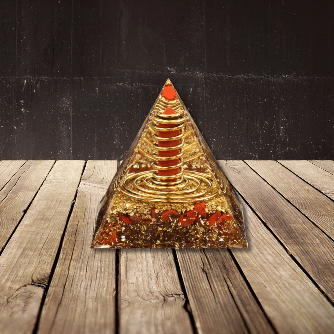 Pyramide Orgonite « Énergie Jaspe Rouge » – 6 cm