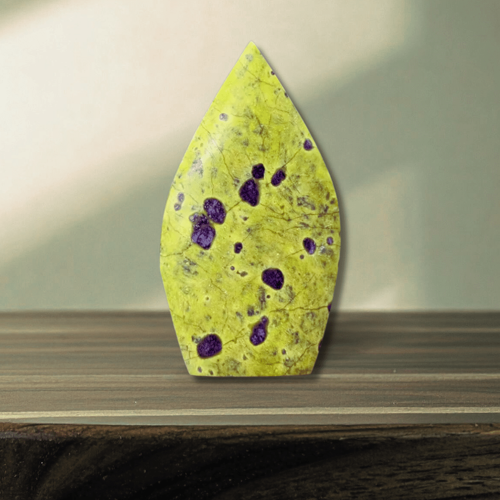 Ses lignes élégantes et sa teinte jaune-verte en font une pierre décorative à l’énergie douce et harmonisante. Idéale pour apporter sérénité et apaisement dans un espace de vie ou de méditation.