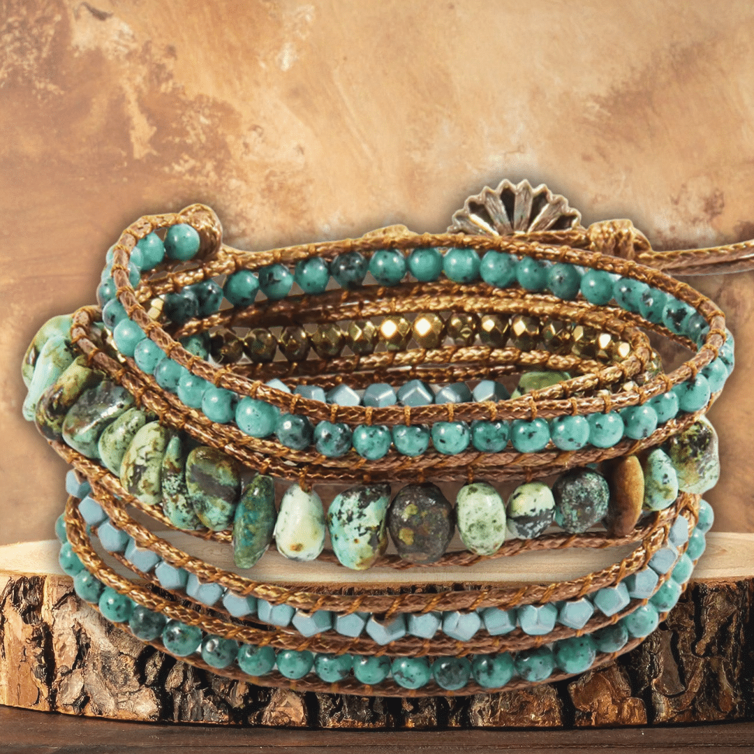 Turquoise africaine (jaspe vert moucheté) : renouveau, équilibre, confiance.